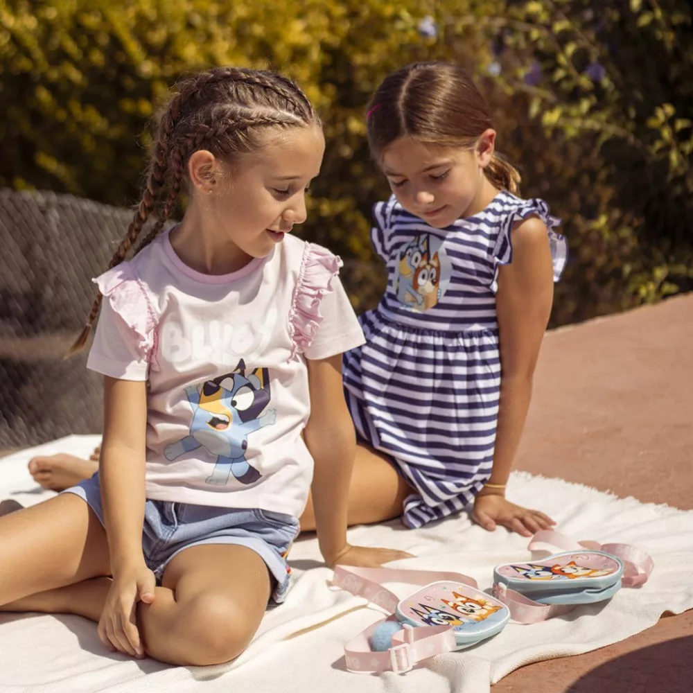 Varázsold el a kislányod ezzel a csillogó válltáskával, melyről Bluey és Bingo mosolyog. Kislányod hozzád hasonlóan magával viheti a kis kincseit.