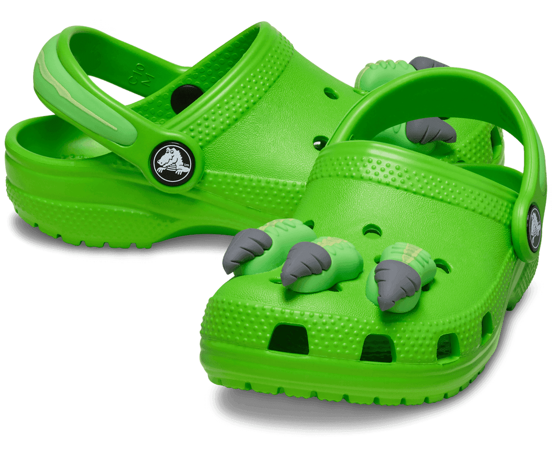 A te fiad is odavan a dinókért? Akkor ez a dínó karmokkal ellátott Crocs gyerek papucs biztosan a kedvence lesz.  Puha és rugalmas CrosLite™ alapanyaga biztosítja az egész napos kényelmet, a forgó sarokpántok pedig a biztonságos viseletet. A szellőzőnyílások biztosítják a gyerekek lábának levegőzését, valamint segítik a víz és a szennyeződések elvezetését. Az ergonomikus talpágy és saroktámasz elvezeti a lépés során kialakult energiákat. Belső talpán körkörös irányban végigfutó masszírozó bütykök fokozzák a vérkeringést, harántemelő boltíve pedig egész napos kényelmet biztosít.