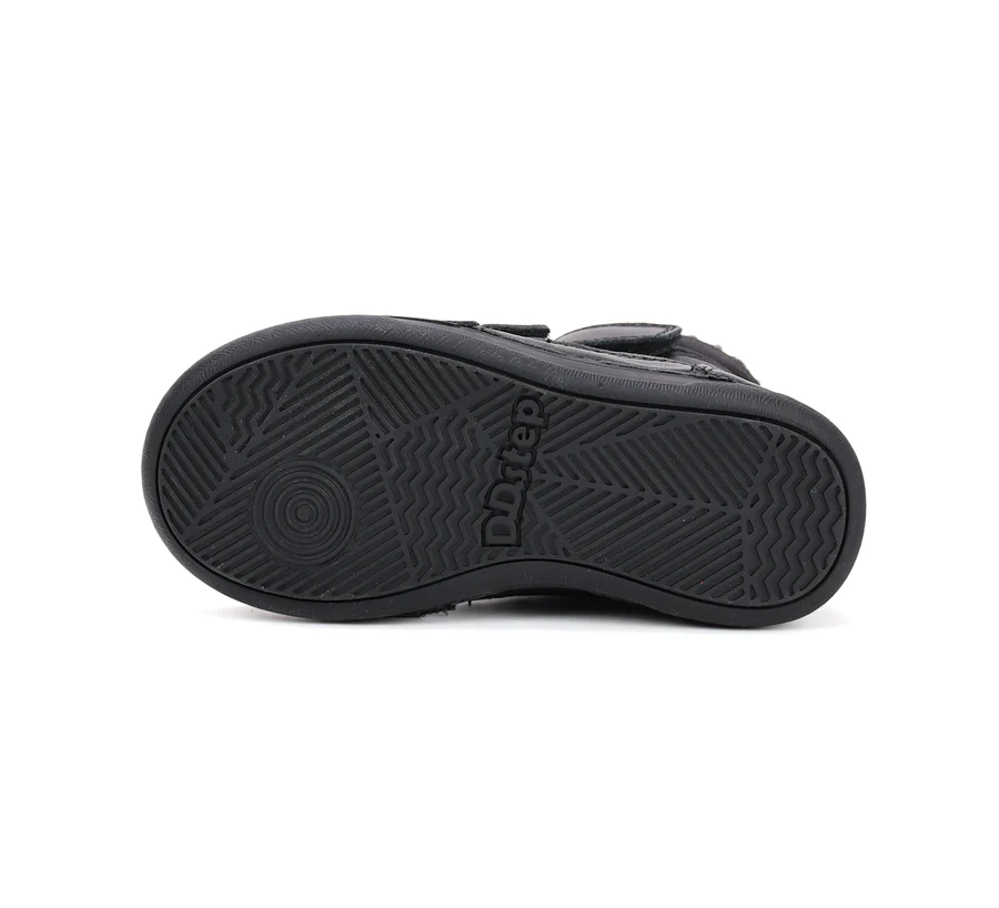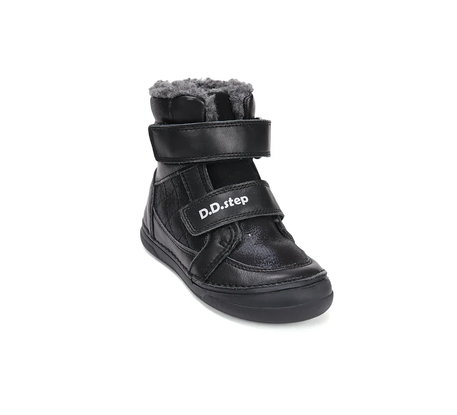 DD Step lány téli bakancs. Kívül bőr, belül bunda béléssel. Fekete színben. Megerősített kéreggel és orrvédelemmel ellátva.