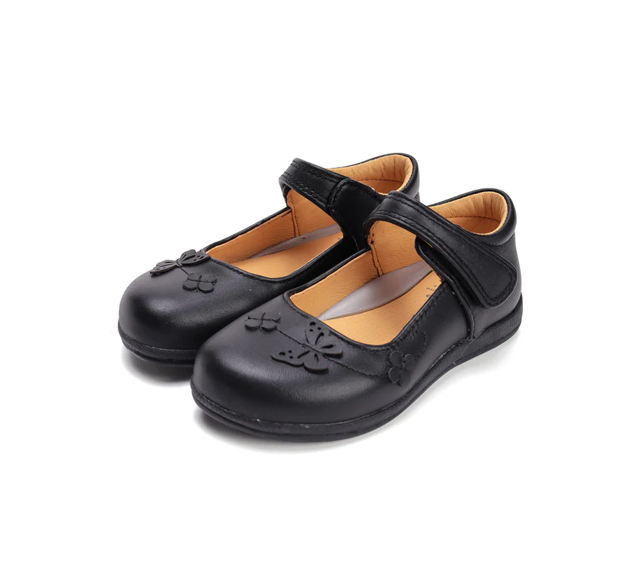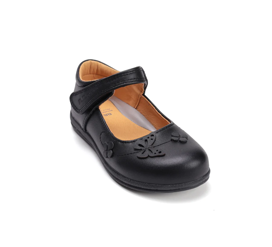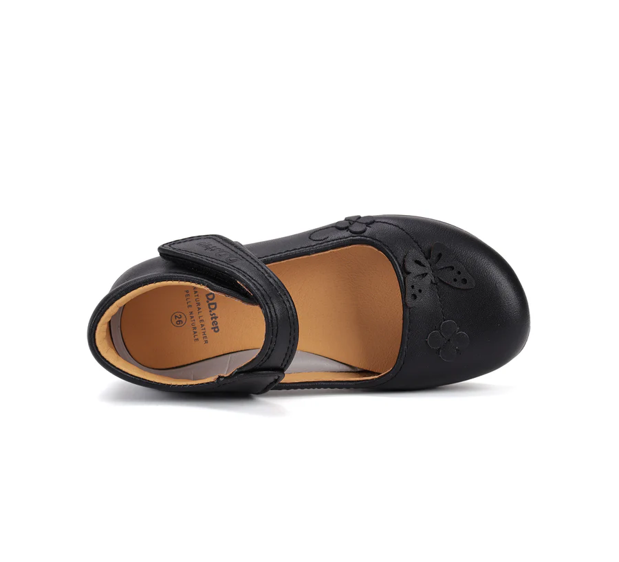 DD Step fekete nyitott bőrcipő, szolid pillangó mintával. Kivehető talpbetéttel. Kiváló választás táncra, ünnepségekre.