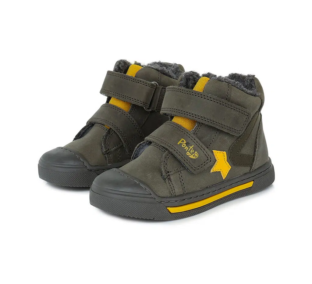Ponte20 szupinált téli bőrcipő szürke színben, oldalán csillag mintával. Kívül bőr, belül bunda béléssel. Megerősített kéreggel és orrvédelemmel ellátva.
