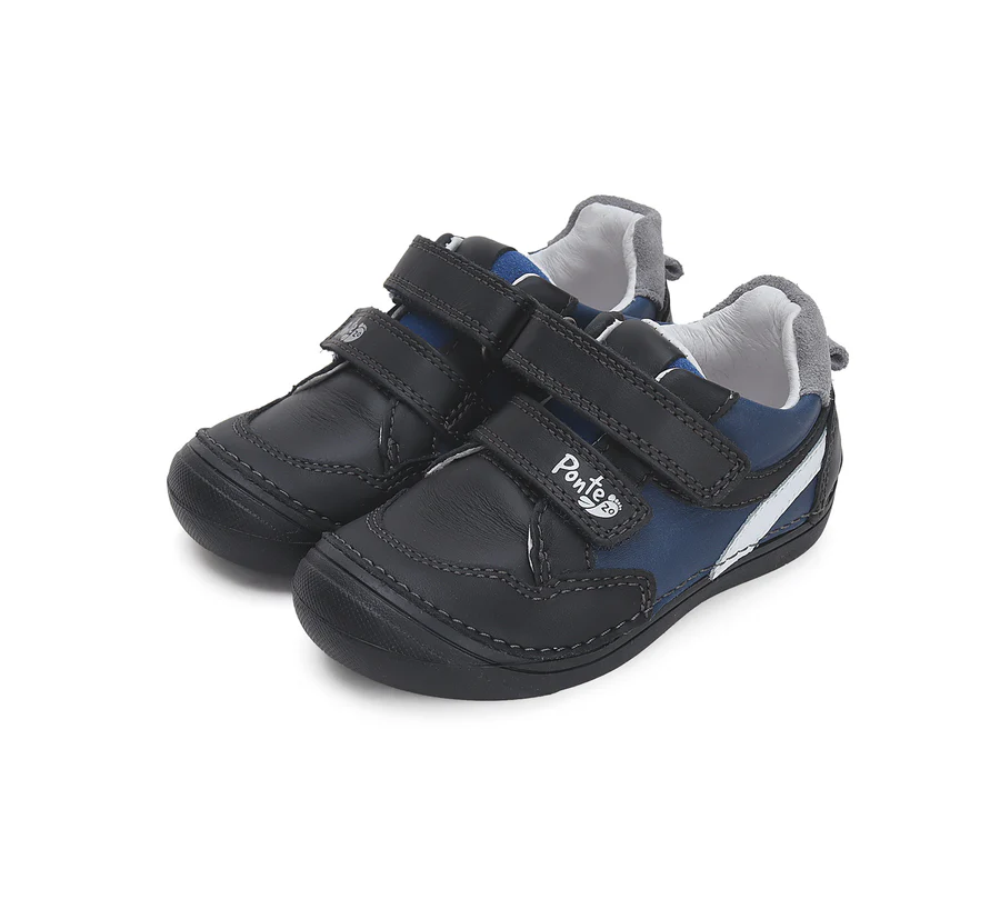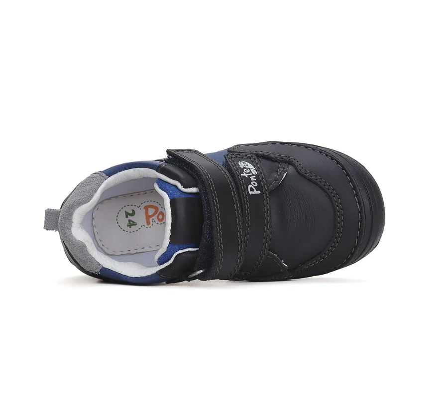 Ponte20 szupinált átmeneti bőrcipő. Kék fekete színben. Megerősített kéreggel és orrvédelemmel ellátva. Két tépőzárral szabályozható.