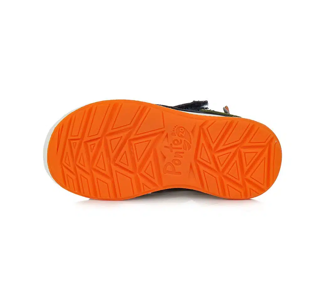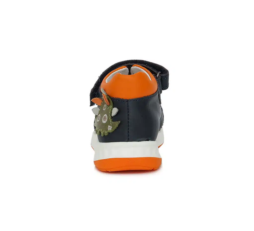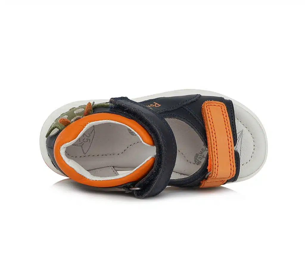 A Ponte20 királykék supinált bőrszandál egyedi, narancs részletekkel és oldalán dínó mintával készült, vidám és kényelmes nyári viselet. Megerősített, zárt kérge stabil bokatartást biztosít, míg a supinált kialakítás elősegíti a helyes lábtartást és a láb fejlődését. A nyitott orr jó szellőzést ad, a két tépőzáras pánt pedig könnyű és pontos állítást tesz lehetővé. Tartós, valódi bőr felsőrésszel készült, ideális mindennapi használatra.