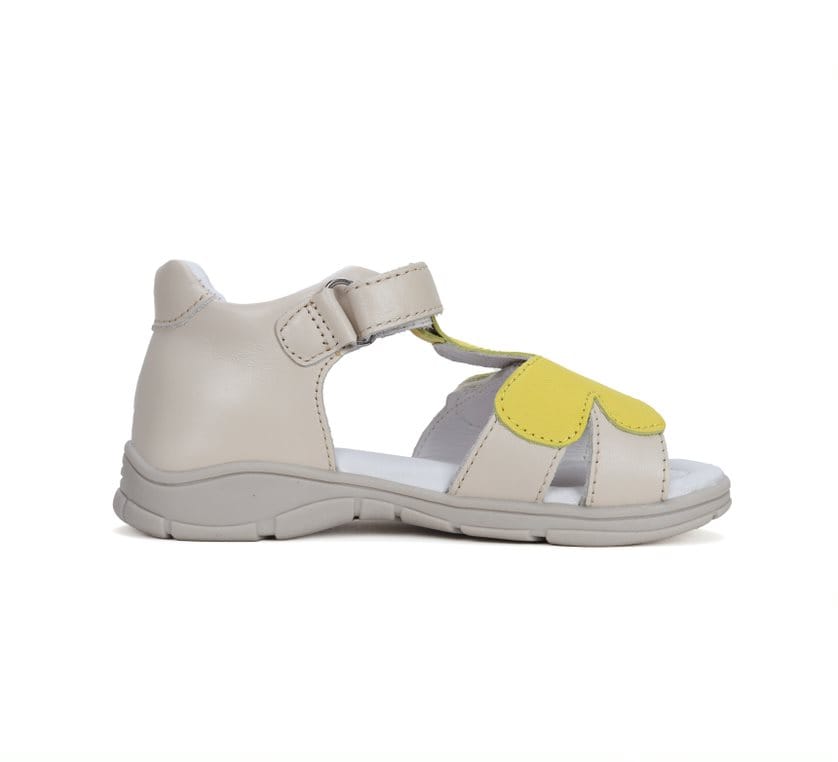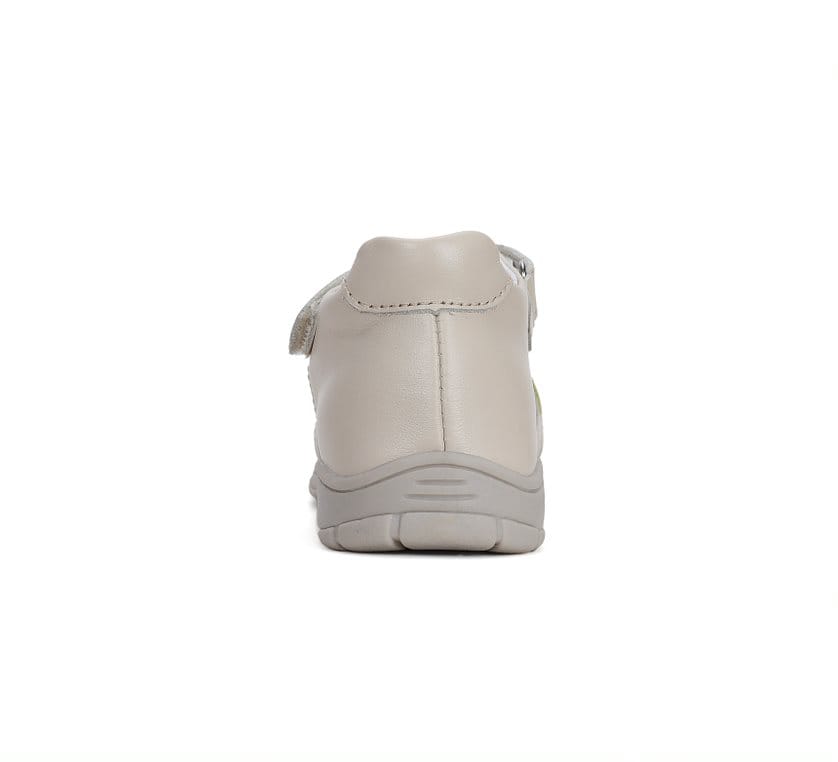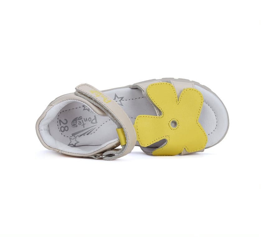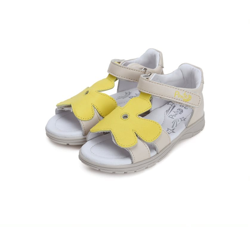 Ponte20 supinált lány bőrszandál. Krém színben, zöld virág mintával. Megerősített kéreggel ellátva, két tépőzárral szabályozható.