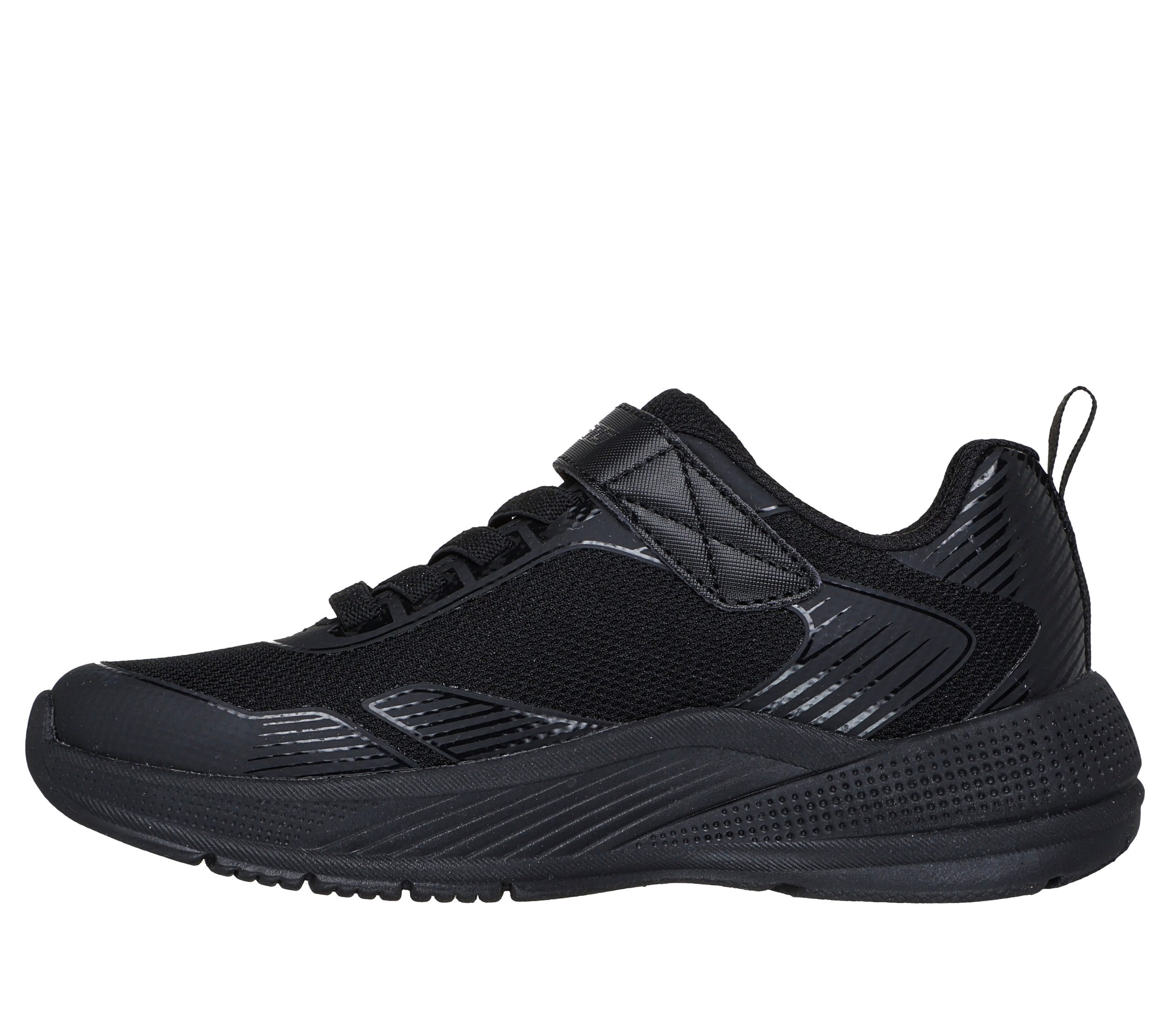 Skechers Microspec Advance párnázott, kényelmes talpbetéttel készült sportcipő. Fekete hálós és 3D -s rátétes felsőrésszel rendelkezik.
