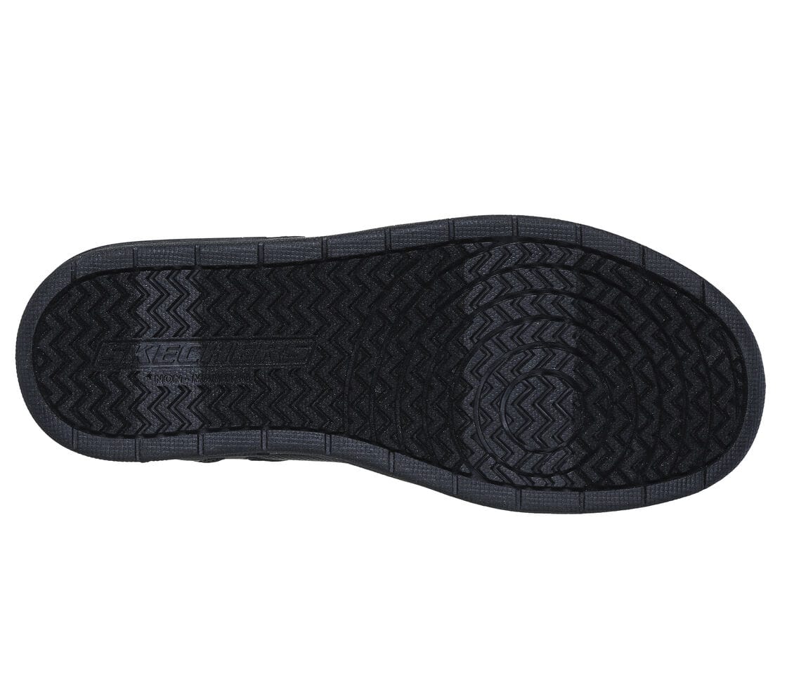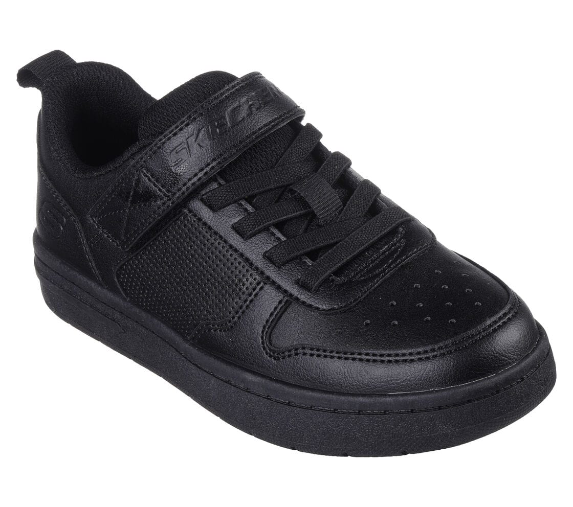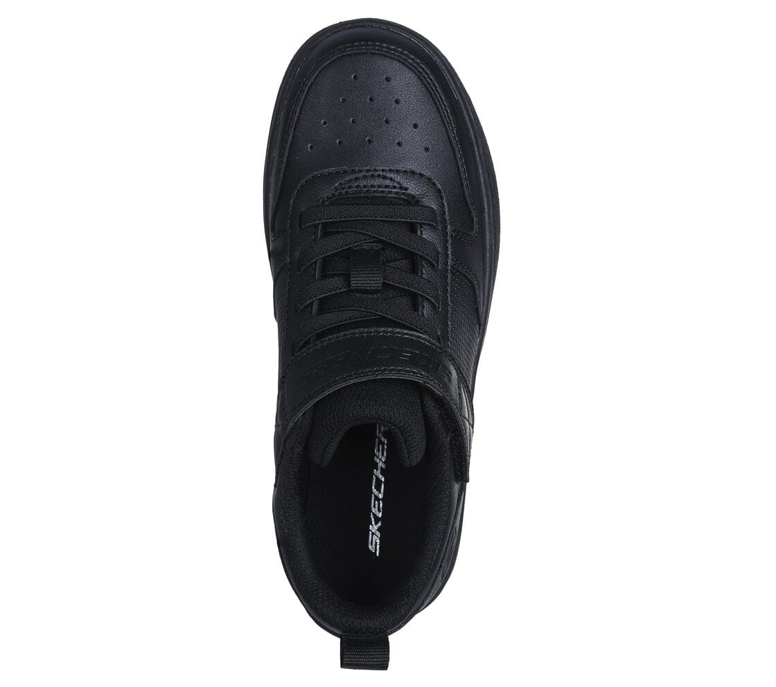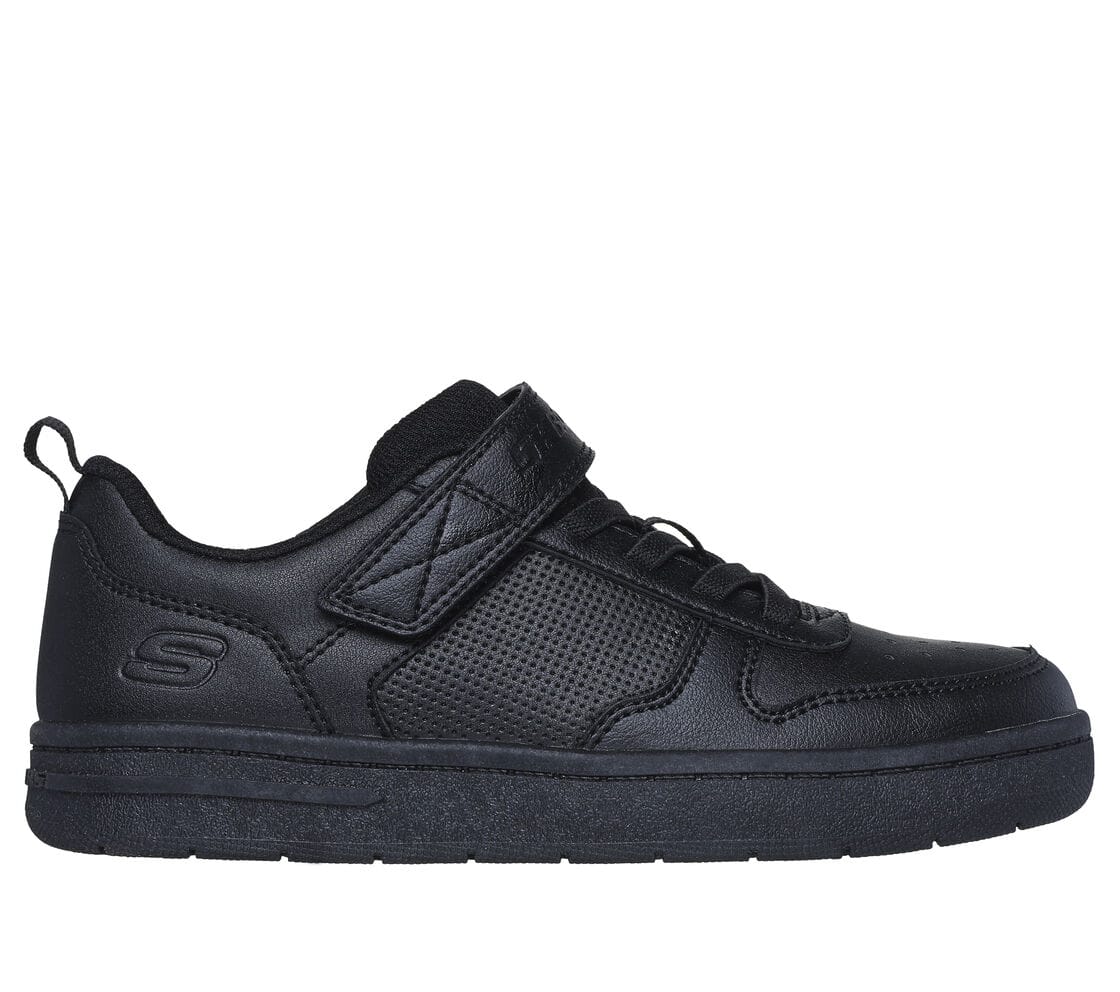 Skechers Street™ Smooth Street fekete klasszikus sneaker. Mosógépben mosható, szintetikus felsőrésszel, rugalmas fűzőkkel, tépőzárral szabályozható. Párnázott, ütéscsillapító talpbetéttel.